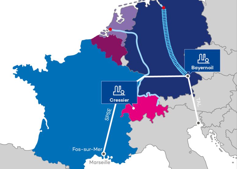 Notre approvisionnement en pétrole brut se fait entièrement par pipeline (ou oléoduc). Ce moyen de transport est parmi les plus sûrs et les plus économiques en énergie. Nous sommes connectés sur une artère importante qui relie Marseille à Karlsruhe. Une ligne indépendante nous approvisionne à partir de Gennes, dans la région de Besançon. Tout notre pétrole est acheminé par bateau au port de Marseille, avant de franchir environ 800 km sous terre et d’arriver à Cressier.